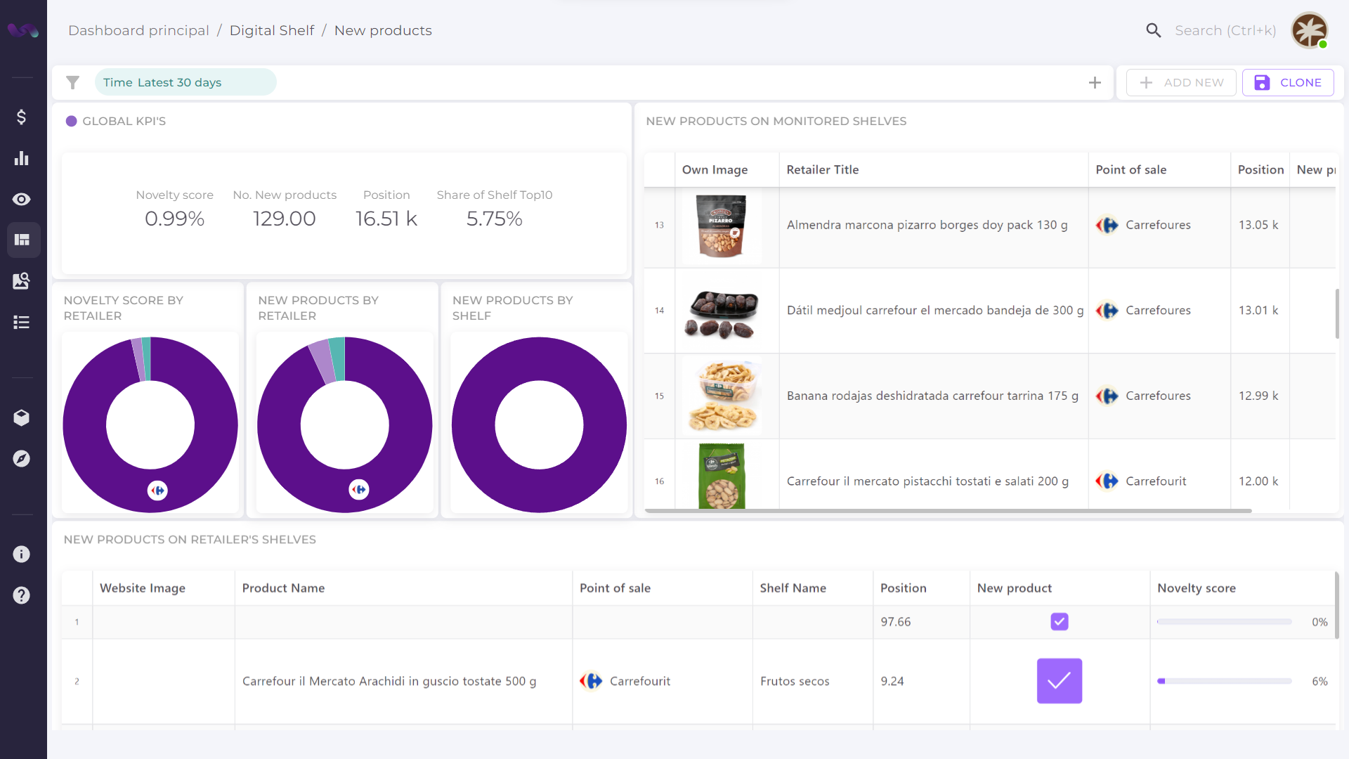 Controla los productos y marcas de las estanterías digitales, sus posiciones y movimientos