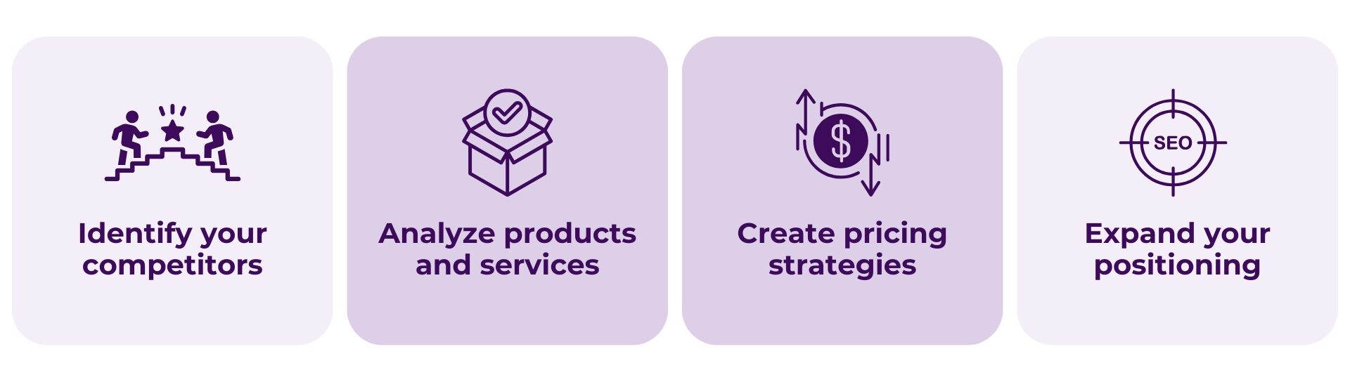 Competitive analysis isn’t limited to data collection; it involves a structured strategy encompassing different areas of the business.